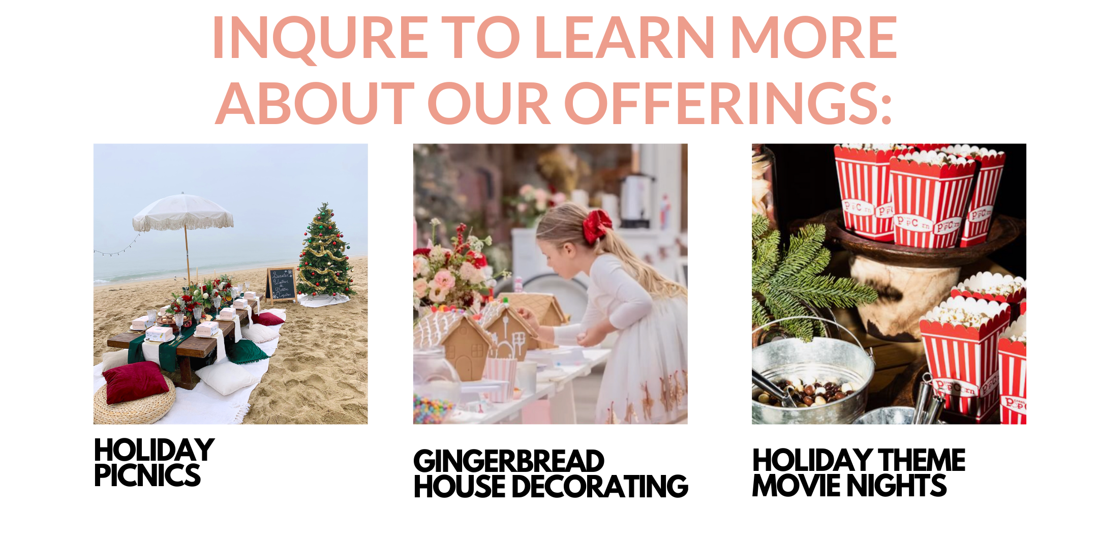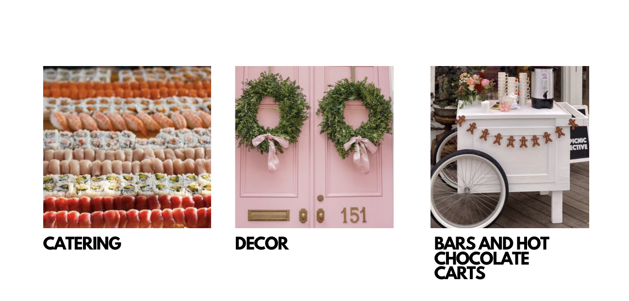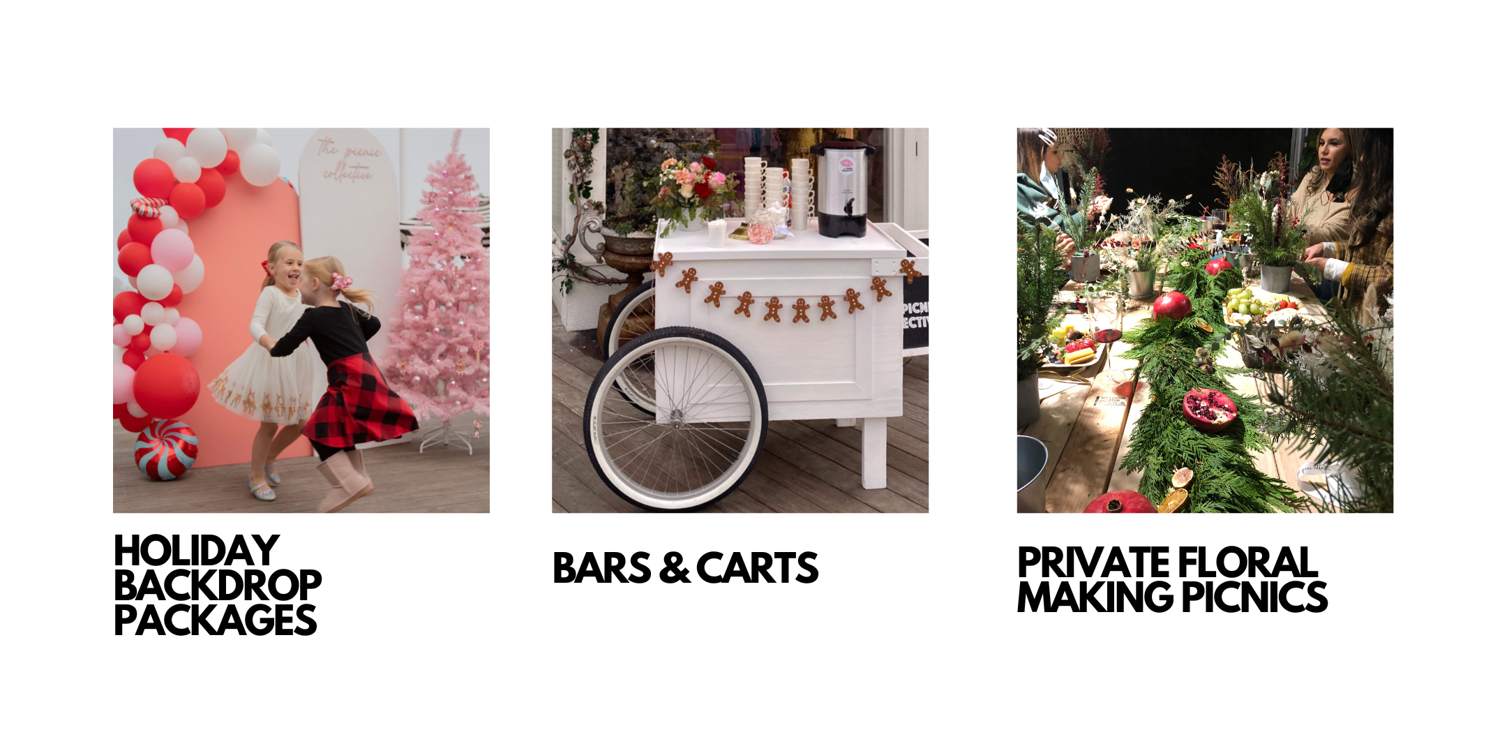 TO SEE A FULL MENU OF OUR SERVICES, PLEASE INQURE BELOW. WE WILL AUTOMATICALLY EMAIL YOU AN INTERACTIVE LIST WITH DETAILS, PRICING, AND PACKAGES. THE PICNIC COLLECTIVE CAN’T WAIT TO MAKE YOUR HOLIDAY SEASON ONE TO REMEMBER!